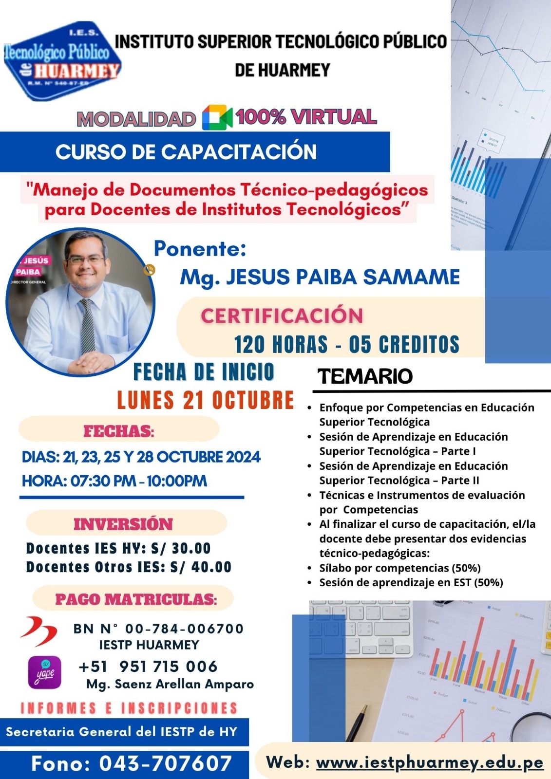 Instituto de Educacion Superior Tecnologico Publico de Huarmey realiza la invitacion al Curso de Capacitacion "Manejo de Documentos Tecnico-pedagogicos para Docentes de Institutos Tecnologicos